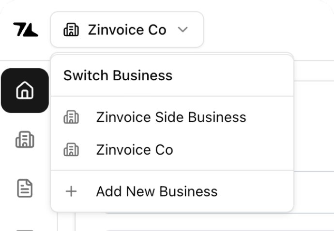 Run multiple brands or entities? Manage them all under one zinvoice account. Keep your branding, customers, and reporting completely separate for each business while switching between them instantly.